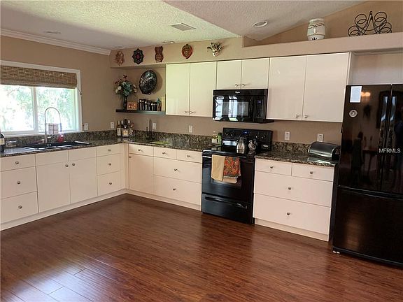 LAKEFRONT PROPERTY. Beautiful 3/2 concrete block home; two-car garage; open floor plan. Newly remodeled kitchen and master bath. Hardwood floors in master bedroom. Property is over an acre with large mature magnolia and oak trees canopy. New roof. Two large lakes located behind and in front of house. Enjoy the firepit for those chilly Florida nights, while overlooking the lake. MUST SEE!