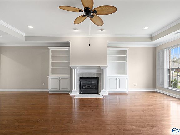 - Features: 9’ Ceiling, Built-in Features, Ceiling Fan(s), Crown Molding, Fireplace, Wood Floor