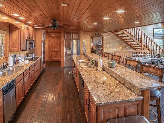 MULTIPLE OFFERS RECEIVED-offers to be submitted by 5pm on 11/21/22. Owner financing available! Welcome home to absolute luxury! This gorgeous cabin in Gatlinburg just minutes from downtown or Pigeon Forge, is a dream come true. Six master suites and one bunk room offer plenty of privacy for all your guests. Beautiful open floor plan showcases the breathtaking views of Mt. LeConte on all three levels. Main and lower level equipped with their own kitchens and great rooms and extra gathering area on second floor. Relax in the hot tub soaking up those beautiful mountain views, or take them in from the gazebo or while you are warming yourself by the fire. If you think the daytime views are stunning, wait until you've seen it at night! The stars are so plentiful and bright, and with over 1.5 acres of privacy, its truly a gorgeous mountain retreat. 2021 grossed $261,117.00 January to October 2022 has grossed $206,754.00 so far before the Holiday demand.
