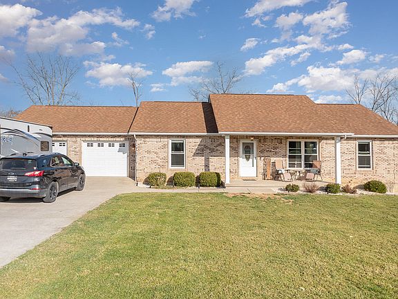 Spacious and private 3 bedroom brick ranch on 6+ Acres. 3 Full Baths. Finished walkout basement with 2 bonus rooms (bedrooms w/ no egress), family room & shop w/ garage door. Newer replacement windows, updated kitchen. You'll love the detached 30x40 toy barn/workshop & the riding trails in the woods. Public water + septic tank.