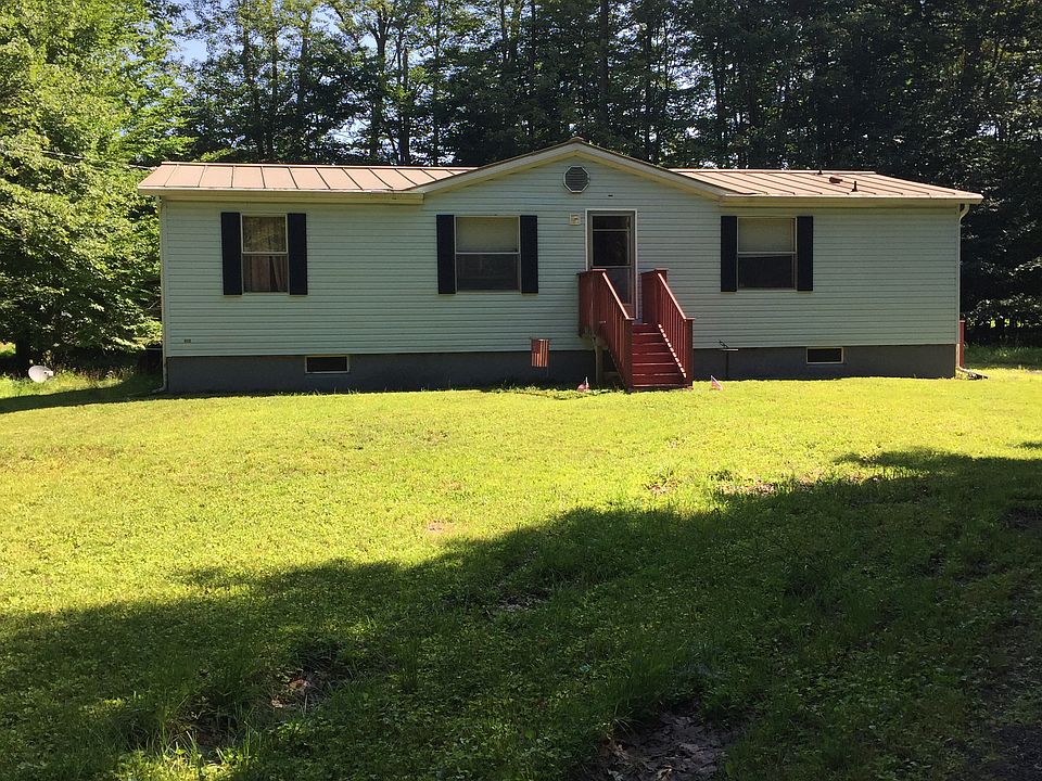 MOTIVATED SELLERS!!! REDUCED PRICE. 3 Bed 2 bath Pocono Mountain Retreat. Built in 2000 and on 1 acre super secluded lot. Well and septic system, NO WATER BILL. LOW TAXES. NO community. Full unfinished basement. PRICED TO SELL, serious inquires ONLY. Home needs some TLC to make it "PERFECT", price reflects, otherwise It would be priced well above $100,000. This house has a METAL ROOF and VINYL siding.Master bedroom has a private bathroom with a stand up shower and separate tub. Eat in kitchen and separate dining area which has glass sliding doors that lead to the outside deck, to enjoy the beautiful outdoors. You really have to see this home to appreciate all this home has to offer.