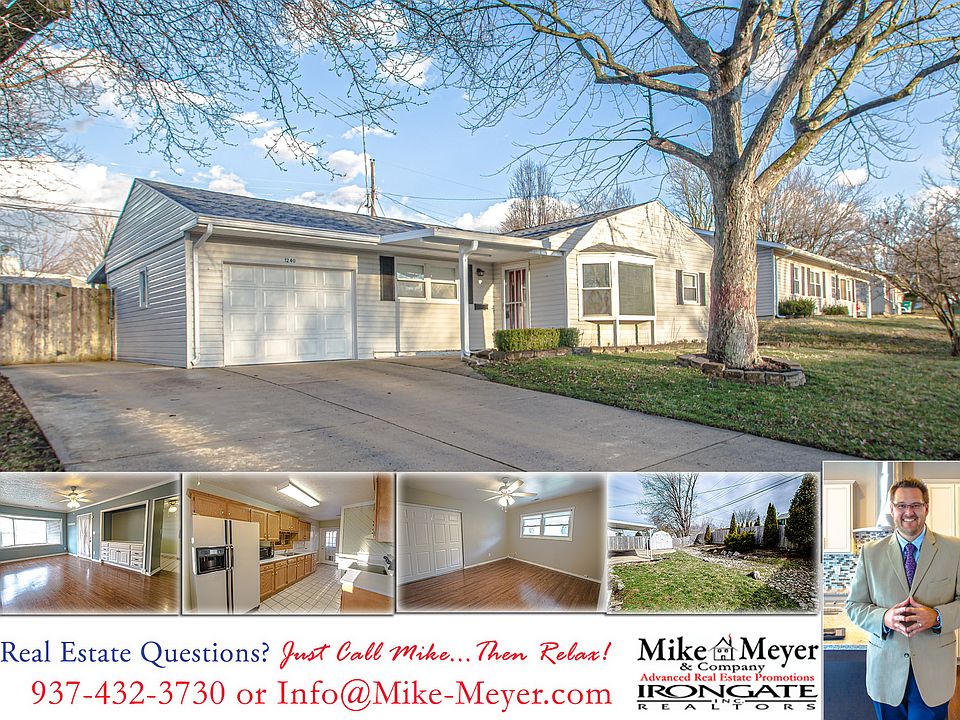 Enjoy 1 level living & a privacy fenced yard, updates + 1,056 sq.ft. Covered front porch w/mobility ramp opens to Family Rm w/ bay window, Kit & Dining Access. 3 Beds + Updated Bath. Privacy fenced Yard, shed covered porch & RV Parking pad. 1 car att garage. Updated vinyl siding, windows, roof, laminate floors, Trane Furnace, AC, electric + roof!