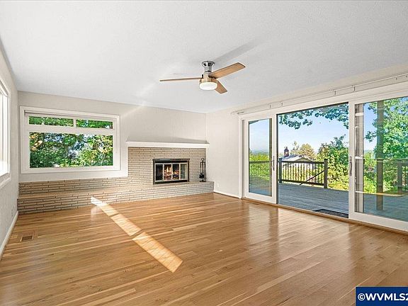 Gorgeous Midcentury single level in South Salem with mountain views off both living and Primary Suite decks. Come appreciate sustainable hardwood floors sourced here in the Willamette Valley, Solar system, updated kitchen & baths, beautiful artistic details by the owners of nearly 32 years. You'll find two living areas both with fireplaces, a huge bonus room, abundance of natural light, large closets and a truly special private courtyard w/water feature as well as mature garden areas and yard spaces.