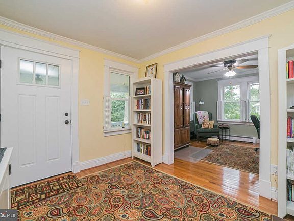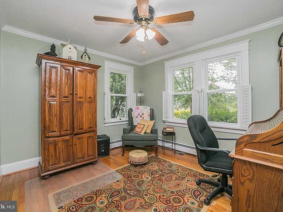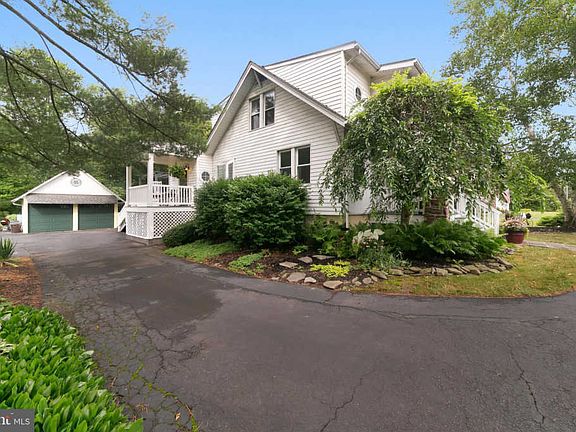 Positively charming farmhouse style home with a 1st floor master suite and stunning family room addition on over 1/2 acre of land. You are greeted by a flagstone walkway leading to a covered front porch. Enter into a cozy and private foyer area with an adjoining study/home office area. Tasteful features such as hardwood flooring, trim work, wainscoting, and shutters add character throughout the first floor. The stylishly updated kitchen with stainless steel appliances and gas cooking opens up into a large sitting and dining area with a vaulted ceiling, abundant windows, glass doors to an expansive rear deck, and side door to a smaller deck. Step down into a gorgeous family room addition with a large window seat, built-in bookshelves, gas fireplace, and open steps to a finished basement recreation area. Back on the first floor you will find a master bedroom suite with three closets and an updated private bath with a walk-in shower. A remodeled powder room completes the main floor. The 2nd floor boasts four good-sized bedrooms with great closet space and an updated hall bath. There is a large unfinished basement under the original home that provides tremendous amounts of storage and a laundry area. The composite deck has a pergola, steps to ground level and overlooks a serene park-like rear yard. 2-car detached garage with raised bed vegetable garden behind it complete with tomatoes, cucumbers, zucchini, squash, herbs, a cut flower garden, blackberry and yellow raspberry bushes, and a trellis for beans. This home is a MUST SEE! Warm neutral decor, move-in ready, simply beautiful inside and out! Newer roof and AC. Central air services the 1st floor; window units for 2nd floor. Replacement windows. Public water but well water can be used for gardens and landscaping. Economical gas heat. Great location with easy access to schools, commuter routes, shopping, parks, and recreation.