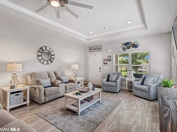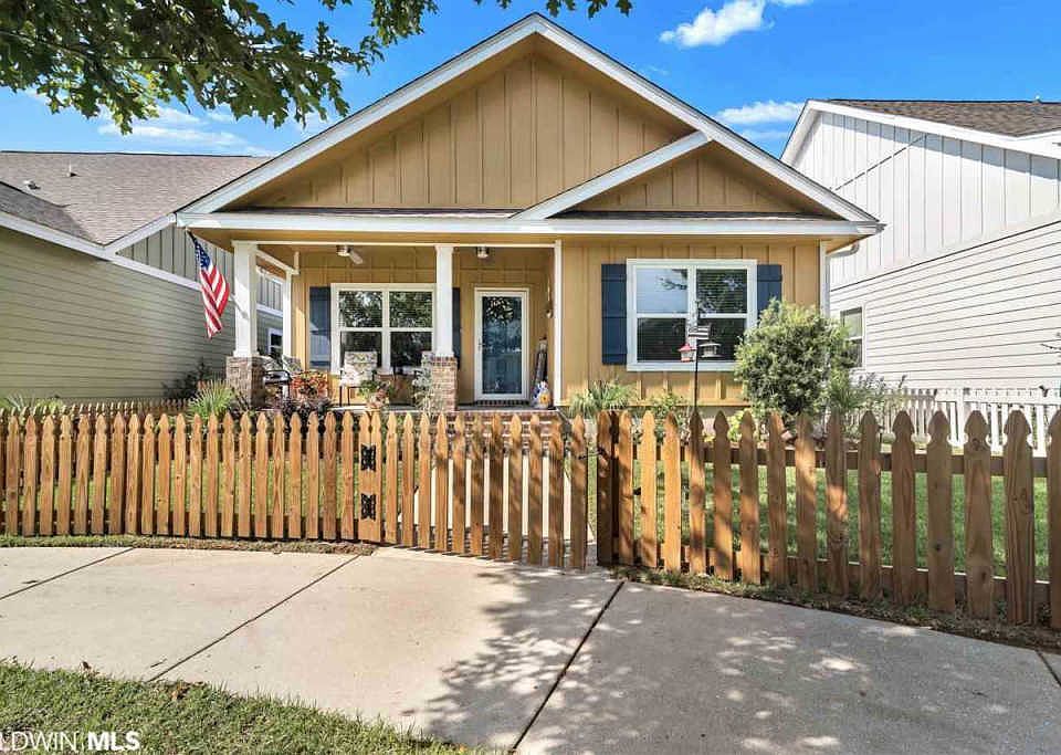 A must see beautiful like new 3-bedroom, 2-bath Coastal Cottage in Desirable Cottages on the Greene. This home has many upgrades and is all on one level, Picture perfectly fenced in front and on the sides, Gold Fortified, and in a Gated Community with Swimming Pool and Clubhouse. All very close to Foley Beach Express and Highway 59. Minutes from shopping, golf and the beautiful beaches.This home includes upgraded engineered wood flooring and carpet (in the bedrooms), TV Mounts and TVâs, a Samsung Refrigerator with Ice maker, Samsung Stove & Microwave, soft close cabinets, extra shelving, upgraded shower doors, custom master bath shower tile, backsplash in kitchen, LED kitchen under and over cabinet lights, Ceiling fans including the on the front porch, upgraded dining chandelier, AC Blue light install, Front storm door, beautifully landscaped with one year termite contract, smart home package with coded front door that can be controlled by App, Gutters installed on both sides of the home. The home also has a two vehicle garage and sidewalk. So much to love! This home sits close to the end of the Cul-De-Sac and has a lovely porch for your enjoyment and it is ready for you! Buyer and buyers agent to verify all information within the contingency period.
