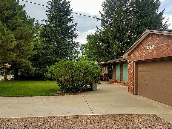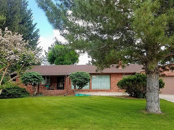 Mid-Century brick-front rancher on one acre, irrigated and fenced. 4br - 2 up & 2 down. Fireplace, Sauna, ceiling fans. 2-car attached garage. Detached 40X56 garage/shop with parking for 12 cars, 12-foot ceilings, 100-amp 220-volt. Includes fully insulated, gas heated and cooled 540 sq ft shop, electric overhead door, with second floor office / game/ hobby/ guest room. RV pad with 50/30/20-amp pedestal. Chicken coop/storage shed original to the property. House has original hardwood floors, wonderful plaster walls, big windows. Kitchen features custom oak cabinetry with extra storage. Finished basement has large family room with fireplace. Lots more storage. New high efficiency gas furnace and Central Air. New 50-gal commercial water heater. Brand new 30yr roof, transferable warranty. Professionally landscaped, with well-maintained trees. 450 sq ft deck, covered front and back porches. Outdoor gas supply for grilling.