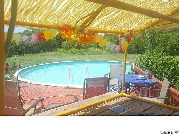 CUTE CAPE COD SITTING ON 6.7 ACRES - ???? THE DECKED POOL & HUGE GARAGE (1600 SQ. FT)WITH 2 DRAINS, 6 DOG KENNELS OPEN TO THE YARD - THIS SPACE IS LOFTED, PLUMMED + ELECTRICITY! THE WARM & INVITING 30X18 GREAT RM. CEILING IS CATHEDRAL & BEAMED - A STONE STYLE FIREPLACE & NEW WOOD LOOKING VINYL COME TOGETHER TO OFFER A "WOW" AT ENTRY. LOVE THE "FARM" STYLE EAT- IN KITCHEN LARGE ENOUGH FOR ANY F GATHERING. 2 LOFTED JACK & JILL BEDROOMS UP, LL WALK OUT IS FINISHED W/ A 41X18 FAMILY RM/WET BAR, 4TH BEDROOM & 3RD FULL BATH, ABOVE GROUND DECKED POOL, HOT TUB, ROOF (07) EISENHOWER DIST. HURRY!