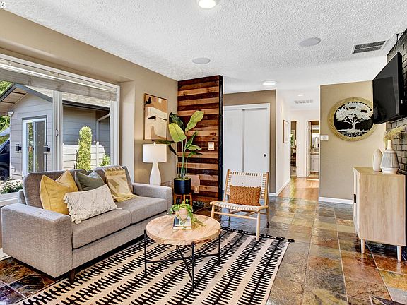 Single-level private oasis on an oversized lot. 5 beds/3 baths with a newly updated kitchen, fresh paint and carpet throughout. Open layout with multiple French doors that open to the most incredible entertaining area with a pool, slide, hot tub, fire pit and your very own tiki bar! Excellent flow with multiple sitting areas, well appointed kitchen with great counter space and breakfast bar. The front driveway can transform into a pickleball court with professional net system. Endless amounts of fun to be had at this lovely house! Pool was re-tiled and furnace/pump are approximately 6 years old. Updated AC/HVAC and tankless hot water heater. Webfoot garage flooring with lots of storage! Landscape lighting and sprinkler system. Washington County.