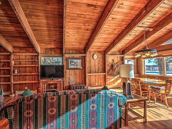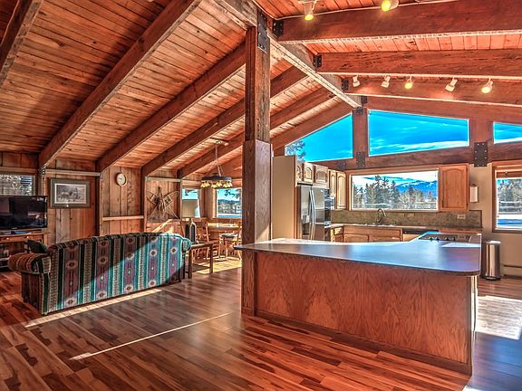 Fantastic location with great Pikes Peak views and southern exposure on 10 acres with domestic well. Bring your animals ? zoned A-1. Rustic Colorado ranch-style home with 4 bedrooms and 2 baths. Walk-out from Master Suite to back deck with hot tub. Large moss-rock fireplace with Lopi wood burning insert in living room. Walk-out lower level family room. Hot water baseboard heat. Two car oversized attached garage plus a 24x40 metal workshop and/or additional 2 car garage and a 672 sf 3-stall barn. Minutes from Divide. Lots of wildlife.
