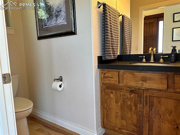 Welcome to this custom built (Palace Homes!) Crystal Park home located in the lower park just a few minutes from the gate with amazing views of Manitou Springs, Cave of the Winds, Ute Pass and Garden of the Gods!! This is a 2 bedroom, 3 bathroom, 3 car tandem garage and an ADA compliant home that even features an elevator! As you approach the property you will notice the spacious and private wrap around deck. Entering the home you'll notice hickory wood flooring and all high end finishes with all of the best quality materials. The open concept living room boasts a walk out to the deck, a custom Xtrordinair fireplace, tall vaulted ceilings and a conveniently located half bathroom. From there, we have the dining room and kitchen. The kitchen has top of the line appliances, knotty alder cabinets, beautiful granite countertops, a large island with a gas stove and a walk in pantry. Down the hall we have the elevator for easy access to and from the lower level. Then the primary bedroom which has a walk out to the deck and the en suite primary bathroom. The 5-piece primary bathroom has tile floorings, a spacious stand in steam shower, a large jetted tub with private views of the mountains and a walk in closet. The walk in closet brings us to the laundry room via a separate entrance/exit. Then we head to the lower level. The lower level has a spacious recreation room with a walk out to the patio and entrance from the garage. Just off the recreation room is a full bathroom and a second bedroom also equipped with a walk out. Lastly, this home has a full water filtration system. Come check this home out today and experience this amazing custom creation!