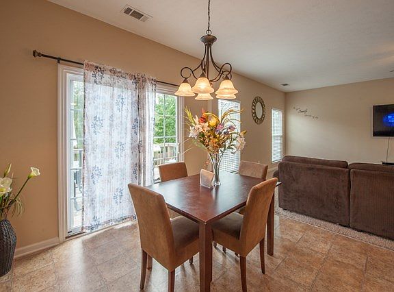 Fabulous 4 bedroom 3 bath home with rocking chair front porch and large, private, fenced back yard qualifies for 100% financing! Living room with ceiling fan opens to kitchen with island, breakfast bar, stainless steel appliances, built-in microwave, pendant lighting, deep drawer cabinets & huge pantry! Wood flooring in dining room! Owners' suite with upgraded ceiling fan, walk-in closet, garden tub, separate shower, double sink & water closet! Good-sized guest bdrm & full bath also on main floor. Two more bedrooms and full bath upstairs! Large closets & transom windows provide lots of natural light! Nice large deck, double-gate to back, laundry w/shelving, lots of storage & 2" blinds throughout! Lot line goes well beyond fence!