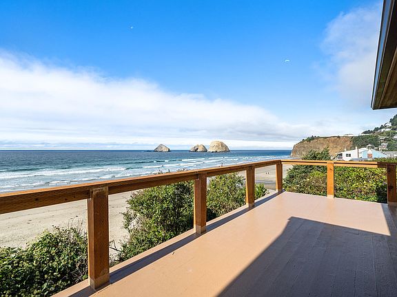 Location, location, location! Oceanfront home located in prized location smack dab in the heart of the Oceanside Village. Unparalleled views of surf and sand including the Three Arch Rocks and Cape Lookout. Just a skip and a step to Roseanna's Cafe and downtown Oceanside. A rare opportunity to own a very exclusive property in one of the NW's most coveted destinations. One-level living with partially finished basement, attic and attached two car garage. 2BD's/2BA's and den which can double as 3rd bedroom. Remodeled in 2005 this home offers original wood floors, vaulted ceilings, updated kitchen and baths and views to die for! Large full length deck and private patio area with built-in firepit. Home is in need of updates/finishing but well worth the investment. Truly a singular location!