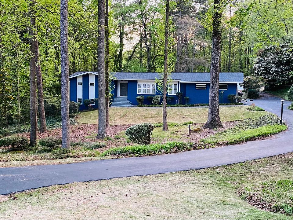 This unique and spacious split-level home is nestled on a beautifully wooded, one acre lot. It has just undergone a full renovation into a 5BD/3.5BA (3BD/2.5BA on the top floor and 2BD/1BA on the bottom). There are two full kitchens - one up and one down - which create an 'in-law suite' style arrangement. Brand new LG and Frigidaire appliances, so you'll likely be on your second lease by the time that pesky 'change water filter' light comes on. Additional features include a climate-controlled sunroom, Nest thermostats, keyless entry, electric fireplace, and fenced backyard. There's also an automatic backup generator system capable of running the entire home in the event of a power outage. The parking is abundant with 4 total covered spaces - an attached carport as well as a detached garage. The upper and lower levels are connected via an open stairway and not separately metered for utilities. This layout could be ideal for a variety of family arrangements, but is not intended for sub-lease. Quiet, mature neighborhood with private walking access to the adjacent Chattahoochee River Trail. Available 5/1. Please call me to arrange a walk-through. Tenant pays utilities. Landlord pays landscaping and pest control.