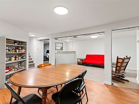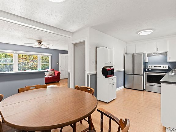 Welcome to this beautiful rambler that sits on 1-acre. This home was renovated in 2021 to include new flooring all throughout, paint, appliances, countertops & bathroom with porcelain tile. 3 bedrooms, 1 bath and a huge bonus room in the basement. As you enter, you are greeted by a spacious living room that opens up to the kitchen and dining area. The kitchen features a breakfast bar and newer stainless steel appliances (installed in 2021). The huge finished basement is perfect for entertaining guests, with its large rec room and custom dry bar. Large bonus room and a large laundry/utility room on this level, great potential to add another bathroom! The home features an efficient 2-zone heat pump to ensure your comfort all year round. Step outside and relax on the rear deck, surrounded by the privacy of the woods. You will love how peaceful it is! Enjoy the convenience of an attached, oversized 1-car garage with rear entry and a detached 1-car garage, providing ample space for your vehicles and storage needs. Don't miss out on this incredible opportunity to own this charming home with tons of privacy and space. All this and a GREAT, convenient location, too! Come and see it today!