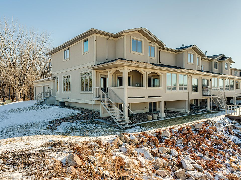 BEAUTIFUL WATERFRONT PROPERTY! Located in Southport and features stunning views of the Missouri River from the covered deck and enclosed sunroom. This two-story townhouse features a grand, open concept design with a semi-open ceiling showcasing the second-floor architecture and loft. The kitchen is perfect for entertaining with beautiful cabinets, pullout features, and an eat-at island. The living room boasts a gorgeous built-in entertainment center with a cozy gas fireplace and opens to the covered deck, the perfect place to relax and enjoy those waterfront views. The main floor primary suite includes a four-season sunroom, plus a full-size bathroom with large jacuzzi tub, shower, and walk-in closet. The laundry room and an additional half-bath are conveniently located on the main floor. The upper level features an open loft that overlooks the main living space and features a nook area that would make a great office, hobby or reading space. There are two additional bedrooms, and a 3/4 bath upstairs as well. The unfinished basement is plumbed for a bathroom, has a newer water heater, and unlocks tons of potential for you to customize to meet your needs. The insulated triple garage is plumbed for heat, has hot/cold water and a floor drain. This home is near a walking/bike path, golf course, horse club, and archery range. Don't miss out on this amazing opportunity to enjoy waterfront living in a stunning property. You can even put your own dock in! It's time to TURN YOUR DREAMS INTO AN ADDRESS. Call TODAY!