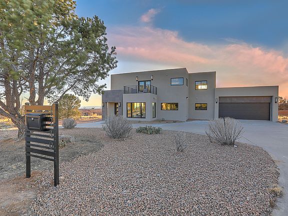 WELCOME HOME! This beautifully designed contemporary custom home on .56 acres in Sandia Heights has been completely remodeled from the studs! Every aspect of the home is NEW! The VIEWS from every room are captured in brand new windows and sliding glass doors that create inside/outside living spaces with almost 900 square feet of decking to enjoy unparalleled sunsets and wildlife. Gorgeous chef's kitchen with freestanding professional gas dual fuel stove and gourmet appliances, quartz countertops and backsplash, wine bar. Owner's suite features a large bedroom space with fireplace and French doors opening onto large deck showcasing mountain VIEWS. Enjoy the spa like bath. Downstairs generous guest room and private bath. Large garage is a 2 car tandem (4 car) and includes workshop space!