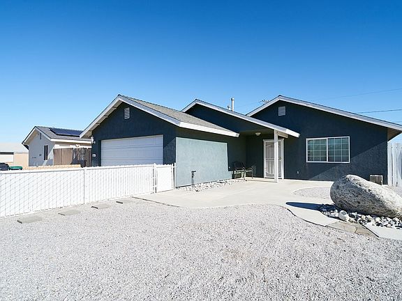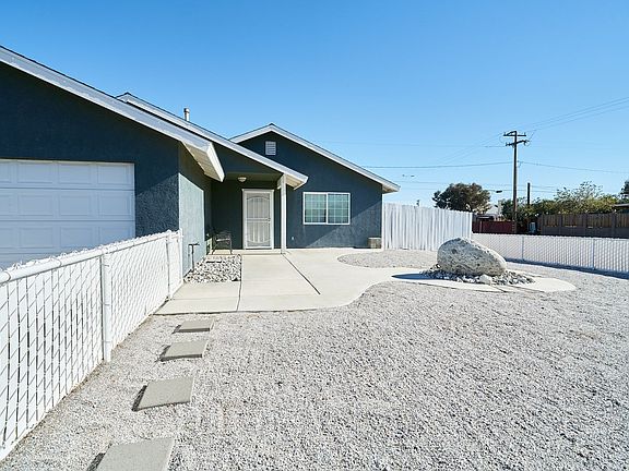 Ridgecrest home awaiting new owners! Charming 3 bed, 2 bath home. Living room just beyond the front entry seamlessly leads into the dining & kitchen space. The kitchen provides plenty of counter/storage space, tile flooring and back patio access. Spacious primary w/ carpeting, lighted ceiling fan, walk-in and ensuite bath. Both guest bedrooms are comfortably sized - each w/ carpeting & lighted ceiling fans. Covered patio & plenty of space to make your own in the back!