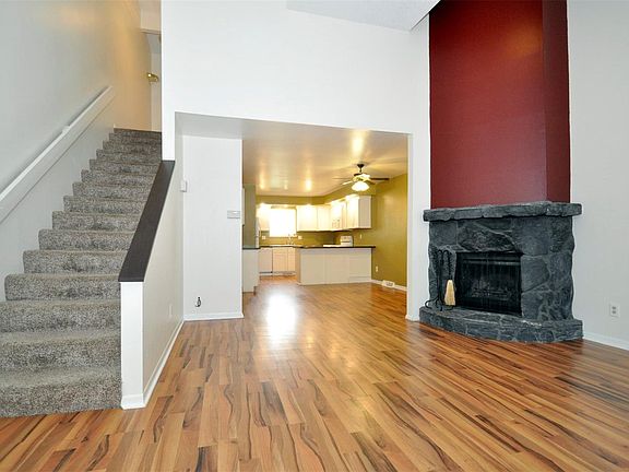 Wonderful 2-Story townhome conveniently located in the heart of Lakewood with easy access to everything - Soaring vaulted ceilings - Acacia laminate flooring throughout the main level - Lovely kitchen w/ white cabinets, granite-look formica counters and all appliances included - Large family room w/ rock surround fireplace and huge picture window - Fenced in back patio w/ landscaping - 2 large bedrooms upstairs each with vaults - Quality bathrooms w/ tile flooring, newer vanities and solid surface counters - Fully finished basement w/ huge rec room and laundry / storage room - Quick to Belmar, downtown and the mountains via 6th Ave - Just steps to the Link Rec Center and all it has to offer