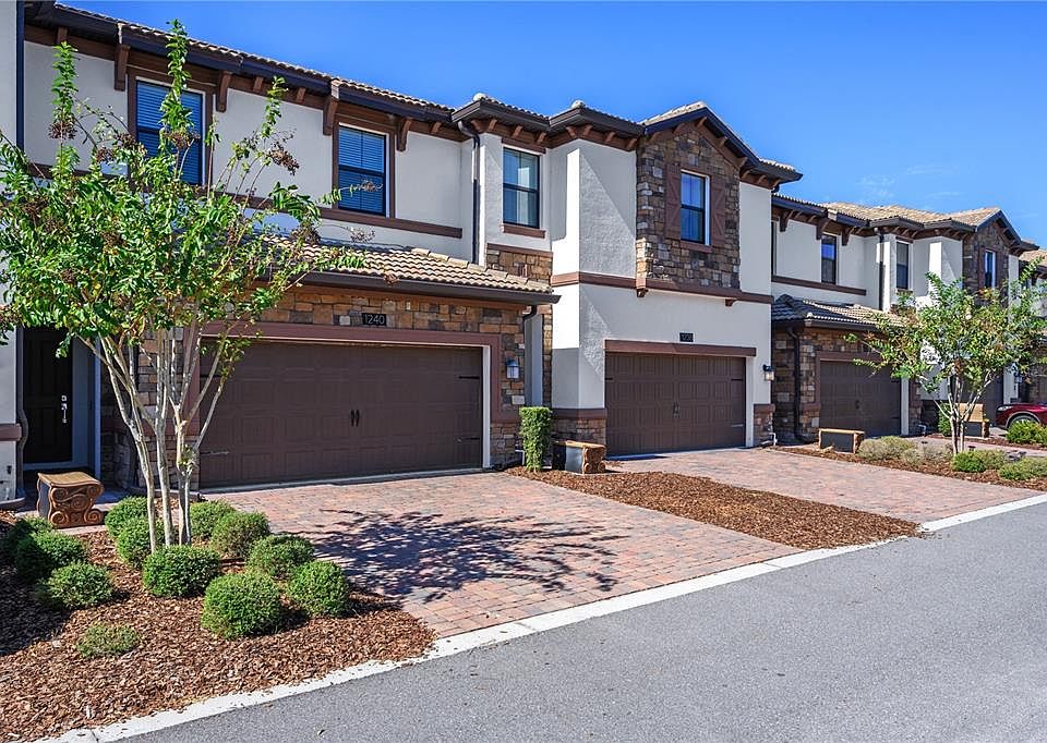SELLER OFFERING $4000 Credit - to be applied towards buyers rate buy down. As soon as you enter this fully furnished home you are welcomed by the bright and airy feel of this beautiful townhome. The downstairs features an open floor plan that lets you move freely from the kitchen to the living room to your spacious backyard. The kitchen features beautiful 42-inch cabinets, with quartz countertops and GE appliances. Continuing upstairs you are greeted by the spacious master bedroom that features luxury vinyl plank flooring, 5-inch baseboards and tray ceilings. The master bathroom features dual sink vanity, a walk-in shower and a tub to enjoy quiet evenings of relaxation. Upstairs you will also find the additional two well-spaced bedrooms and second bath. Once done inside it’s time to enjoy the Florida lifestyle and the luxury of living in Champions Gate. As owner of this beautiful townhome, you will enjoy access to the clubhouse with its amenities such as the pool, game room, fitness center, golf simulator, access to the renowned golf course of which Champions Gate is known for and maintenance-free living! And to top it off you are in an excellent location, minutes away from shops, restaurants, grocery stores and easy access to the highway. Other features of this amazing property include brand-new City Furniture, oversized lot with back paved patio, new interior paint and so much more! Truly a property that from the minute you step foot in you will be ready to enjoy. *** Property qualifies for 100% financing***