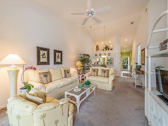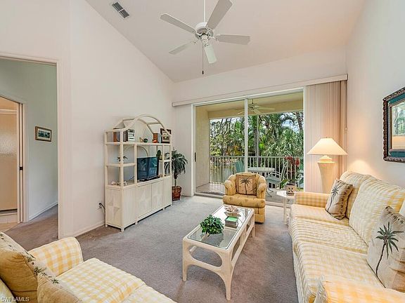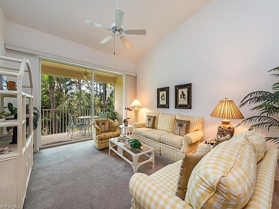 C10084 Fabulous lake and swaying treetop views from this sunny and beautiful 2nd floor, 3 bedroom condominium, positioned on the south END of the building in Westgate at Imperial Golf Course in North Naples. Because of being an END UNIT, there are extra windows, maximum sunlight, vaulted airy ceilings, and a feeling of breezy living from the lanai! You can also see the fishing pier where people can catch and release! The lovely eat-in kitchen was redone in the last year with white cabinets and white marbled countertops. The kitchen, boasting stainless appliances and a glass top range, has an open pass through to the living and dining room. The 3rd bedroom can also serve as a den, and it has a closet and double doors that close for privacy. This home also has a reserved carport! For your convenience, the bright almost new furniture can remain in place so that you can start enjoying your new home as soon as possible, or we can remove it. Your choice! This condo is located close to the large pool with a lap lane and the clubhouse. Westgate offers several pools, pickleball, tennis, an active clubhouse with exercise room and a perfect location close to beaches, shops and restaurants.