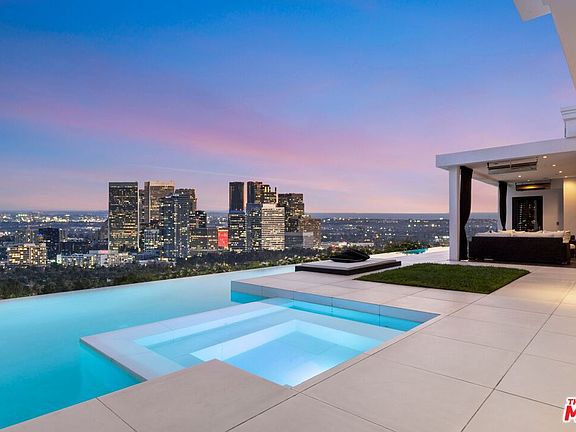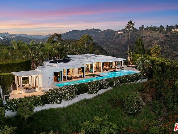 This architectural masterpiece is set upon a promontory on one of the most coveted hidden streets in Beverly Hills, Shadow Hill. One-level Ralph Lauren contemporary with seamless indoor/outdoor living and explosive views from downtown to the ocean and everything in between. Huge deck and an 80-foot swimmers infinity pool with spa that over looks the city. Oversized double-gated motor court. Walls of glass allow natural light to fill the home and frame the endless views. Stainless steel kitchen has an oversized island with seating, a mirrored fireplace, and opens to the deck for dining al fresco. Spacious primary suite with views, a spa-like bathroom, and walk-in closet. The latest and greatest amenities including home theater, office, and a guest house with separate entrance that offers 2BD, a gym, and canyon views. Outside enjoy a built-in BBQ, multiple poolside seating areas with heaters, a fire pit, and outdoor shower overlooking the canyon. Experience unparalleled luxury living in this modern estate, just minutes from the best shopping and dining Beverly Hills has to offer.