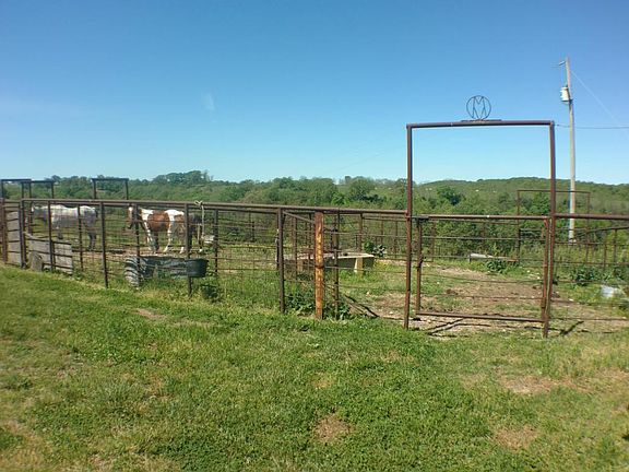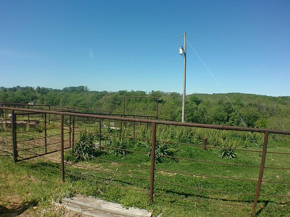Perched atop a green Ozark hill top sits this 60.5 acre farm. Fenced and cross fenced with a stable, hay barn, automatic watering system, and a large shop building. The large metal building with metal roof has a 900 square foot two bed and one bath home with full kitchen and nice living room, central HVAC also. A one car garage off the living quarters and large shop attached. Perfect for full time living, hobby farm, private hunting preserve. Borders conservation land to the north.