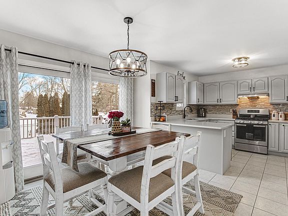 STATELY, 4Bdrm/2.5Bth, 1.5-Story Home w/ FINISHED BASEMENT boasts LUXURY and ELEGANCE in PRIME LOCATION just West of Rt41, South of Rt30, in Schererville's EAGLE RIDGE Subdivision. Voluminous, 2-Sty Foyer w/ Tile Flrng WELCOMES YOU into Home, flanked by Den/Office and Formal Dining Rm, featuring HARDWOOD FLOORING and Large Windows. UPDATED, Eat-in Kitchen boasts SS Applcs, Glass Tile Backsplash, Grey-toned Cabinetry, & Convenient Bar Area w/ Beverage Fridge. Kitchen is OPEN CONCEPT to 2-Sty GREAT ROOM w/ FIREPLACE. Glass Slider from Eat-in Section leads out to ENTERTAINER'S DREAM OASIS in Fenced Backyard w/ TREK DECKING and Custom Paver Patio w/ Knee-wall. Main Level Primary Bdrm offers Tray Ceiling and PRIVATE ENSUITE w/ W-I Closet, Dual Vanity Sinks, Soaking Tub, & Separate Shower. Upper Level has 2 Additional Bdrms, Full Bth, & LOFT AREA w/ Closet that could be Possible 4th Bdrm. FINISHED BASEMENT provides MORE LIVING SPACE w/ Recreation Rm and Additional Storage/Workshop Area.