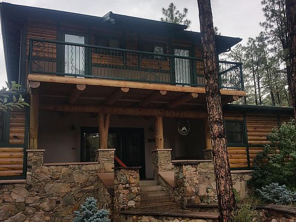YES! The canyon is included with this beautiful retreat home. This residence is situated on 3.5 acres of wooded forest along a spectacular boulder-filled private canyon with two seasonal creeks! Over 1,000 sf of Trex deck with glass railings overlooking the private Boulder Creek Canyon. Remote controlled exterior lighting operates the driveway entrance and canyon lighting which uniquely showcases this wonderful property. The covered front porch entrance and dry stacked stone walls introduce the main level living of this 3 bedroom, 2.5 bath, 2,445 sf home. Featuring knotty pine wood flooring with peeled log wall accents throughout, vaulted ceilings with lots of light enhancing over-sized windows.