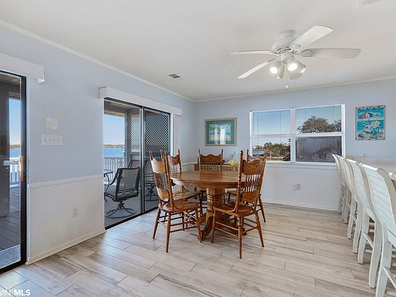 Charming upgraded home on Little Lagoon! Little lagoon is perfect for swimming, fishing, kayaking, and boating. This home is also conveniently located minutes from the main public beach, the popular Hangout restaurant, the Gulf State Park, and shopping. You can't beat the direct water views and sunsets you can experience from the back porch, which offers plenty of space for your guests! You can also enjoy the views while you're cooking in the kitchen or relaxing in the living room. The interior has been remodeled and features beautiful coastal paint colors, wood plank tile flooring, and stainless appliances. There is parking underneath the home, as well as a huge storage area for all of your water toys! The pier has a slip for your boat, and there is also a seawall. The home feels more private with its long paved driveway back to the water, as well as the fencing on both sides of the property. Other features include a basketball goal and a new outside heat pump. This property can be used as a rental or a 2nd home. Note: All furniture conveys except for 3 pictures.