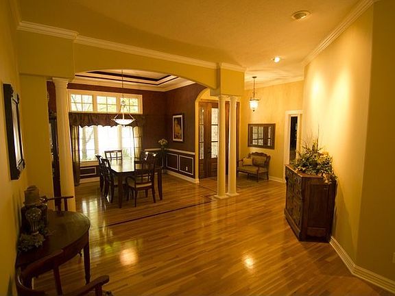 Gorgeous 4 bed, 3 bath home seated on a little over a quarter acre in desirable Stone Meadow & great schools! Home greets you with a covered porch & walks into a foyer, plus formal dining with beautiful arches & columns. Large open floor plan with hardwood flooring throughout & double-sided gas fireplace with mantle between living room & kitchen. Family room features floor to ceiling windows for great natural lighting. Kitchen/dining combo offers raised ceilings with open beams, expansive windows, large breakfast bar, stainless steel appliances, convection & double ovens & granite counters! Spacious master suite has raised/tray ceiling, stunning bath with double sinks, separate vanity, large jetted tub, walk-in shower & over-sized walk-in closet.