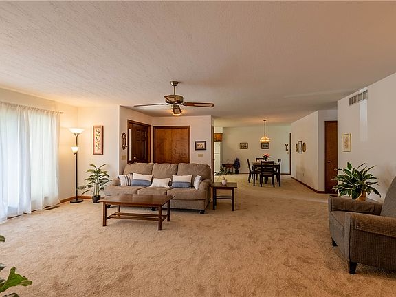 Pristine 1 owner ranch in Warrensburg School District! Located on a private cul-de-sac. Entering the front door, you feel as if you have walked into a brand new home. Charming angled gas fireplace, all new carpeting and paint. Front office with plenty of built in shelving could be easily converted into the 3rd bedroom. Super nice bathroom, all woodwork looks brand new. Private master bedroom has own bath and exit door into the main floor laundry and access to rear yard. Nicely designed kitchen with lots of cabinets, with small island, and opens onto the dining area. Massive poured concrete basement, is unfinished so you can add your own touches. Nice 1/2 bath in basement. Back yard has all BRAND NEW, maintenance free, privacy fencing. Super sized 2 car car with new garage doors on front and a new garage door leading to the back yard. Just move right in!