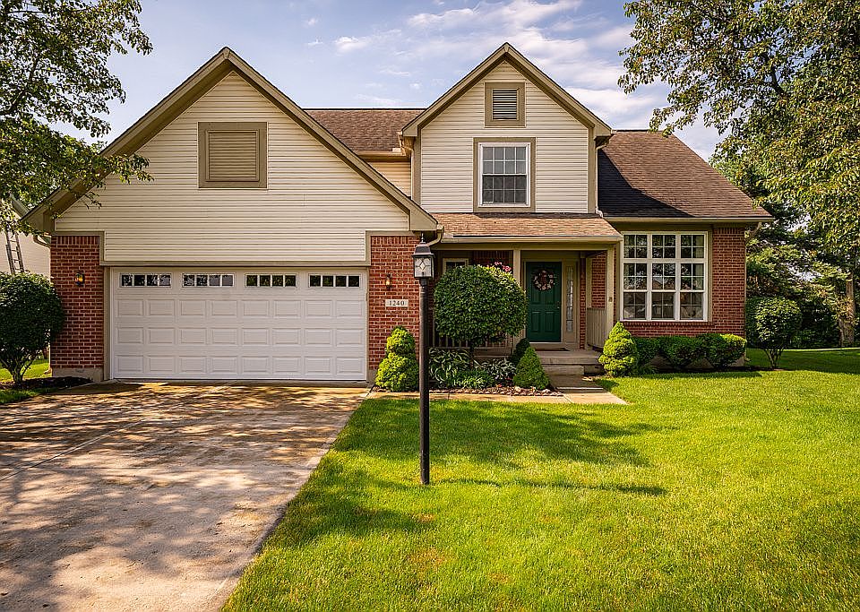 Located in popular Fawn Ridge - lower Fairborn taxes w/Beavercreek schools. Stately brick adds to curb appeal, enjoy your morning coffee on your covered front porch. This 1 owner well maintained home offers a lush view in the backyard & finished basement including rec room & loads of storage. Premium Pergo floors & soaring cathedral ceilings in the formal living area - lead to formal dining - perfect for a large family table. Kitchen w/solid oak cabinets, Quartz countertops, neutral flooring, recessed double basin sink, stove & dishwasher 2019 & pantry. Breakfast area w/tri-window bump-out - open concept living - enjoy laughter from the family room while baking cookies in the kitchen! Master w/walk-in closet, his & her vanity w/storage & spacious glass door shower. Add'l full bathroom w/shower-tub combo conveniently located to the other 3 bedrooms. Upstairs bathrooms have upgraded tile flooring. Attached 2 car garage w/new door & opener 2018. Whole home updated w/Pella windows 2014.