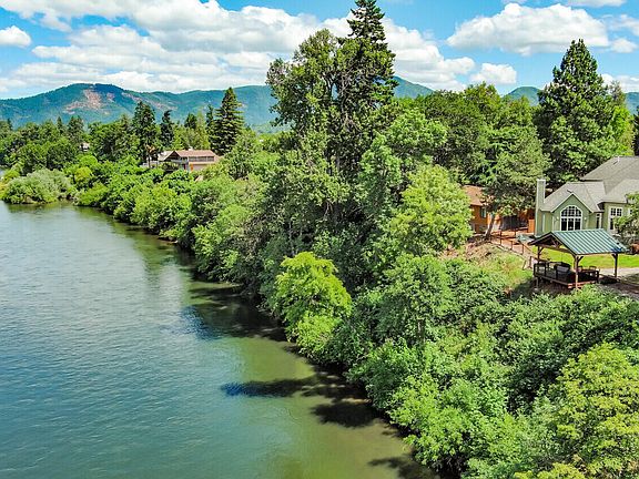 Fabulous Riverfront Home! Gorgeous views and prime location in this 2003 built Magallon custom home on the Rogue River. A stunning home on a half-acre with 22 ft vaulted ceilings, huge gourmet kitchen w/Wolff range and updated Kitchen Aid appliances. There are beautiful granite counters throughout, hardwood floors, new carpet in 2016 and new exterior paint in 2016. Architectural design and detail throughout with gas fireplace in the large living room, and sliders off the kitchen and living room to the deck overlooking the river. Large main floor master suite with a huge walk-in closet and separate quarters above the garage, perfect for an art studio, bonus room or separate guest room. Don't miss this Southern Oregon Retreat!
