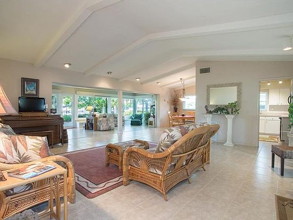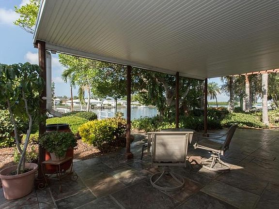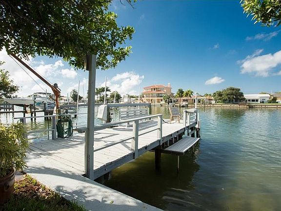 Spacious waterfront home w/vaulted ceiling & open floor plan. Move right in. Boater's paradise; 5 min to Gulf via John's Pass. Walk to community park w/lighted tennis courts, ball field, playground and shuffleboard. Attractively landscaped & low maintenance, Florida friendly/native plant yard. Small area of grass; easily cut w/ weed eater. Large covered patio waterside w/ a slate/concrete stamped deck. Great home to entertain in! Nice view of Christmas Boast Parade.