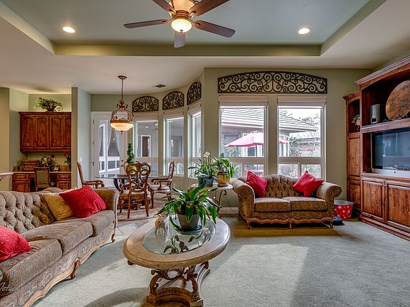 Beautiful 4 bedroom 3 bath home with office in Seven Oaks Grand Island! This Sweeney custom built 3520 sq ft home on a large corner lot has many amazing features including a private courtyard entry with beautiful landscaping. Fully paid for solar system with in-set panels, a gorgeous backyard with a tranquil Koi pond with dual water falls! This split wing floor plan features two Master Suites with large bathrooms, jetted tubs, showers, and oversized walk in closets. This home also features a large guest room and a bonus room that can easily be converted into a fourth bedroom. The office has a great view with courtyard access! Family room has built in media cabinetry with a large fireplace that is overlooking the kitchen. This dream kitchen has large upgraded granite counter tops with a walk in pantry, a wine fridge and much more!
