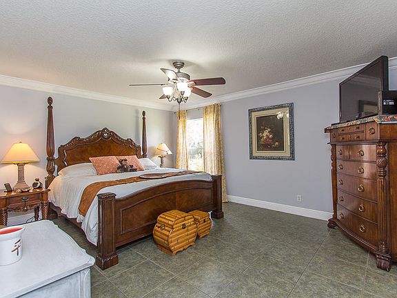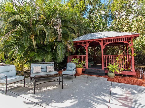 Absolutely amazing home with wonderful landscaping... on a paved road! Enjoy the gated approach to your home as you take in the barrel tile roof, lush privacy by the areca palms. Once you walk in, you will find tile and crown molding throughout the entire home! The kitchen bartop has river rock wall covering that ties in all of the colors as well as the stainless appliances, Corian countertops and cherry wood cabinetry! The yard with sprinkler system has a secluded and private patio and gazebo, or you can enjoy your covered and screened patio right from the main home. This is quiet, quaint charming living!