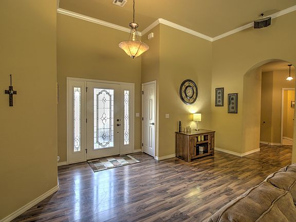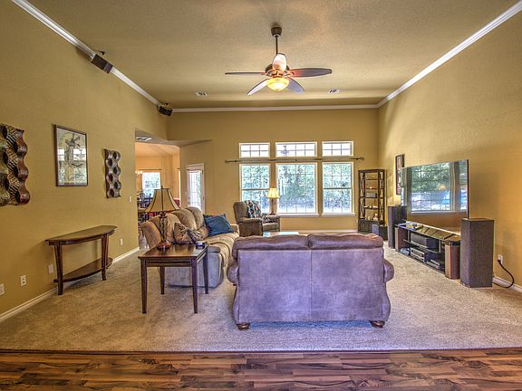 Fabulous floor plan! Dramatic 14' ceilings. Hearth room w/WB fireplace opens to kitchen w/ warm maple cabinets, granite counters, 2 eating bars & exceptionally large pantry. Master suite has HUGE closet & spa bath. Office or 4th bedroom professionally added. Rolling acreage w/ mature trees, wet weather creek, perfect for 4 wheeling, camping , hunting or riding trials.