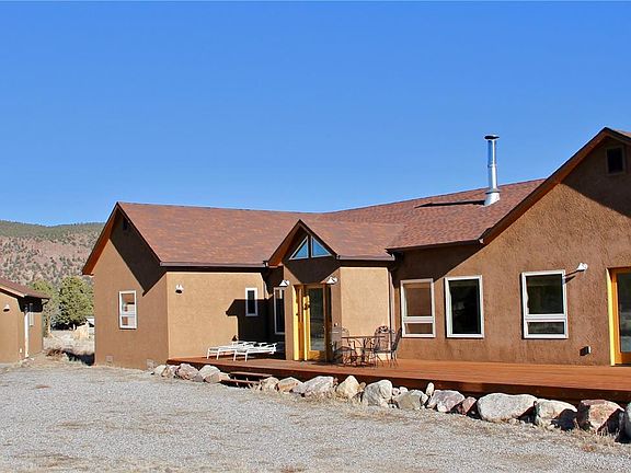 Spacious Contemporary Home on acreage basks in mountain views. 2,292 sf, 4 bed/3bath home on 2.27 acres with big mountain views. Open floor plan tailored to fit your lifestyle; kitchen boasts granite counter tops, large pantry, skylights and large rear deck; master bedroom features private entrance, front & rear deck, 5-piece bath with clawfoot tub and loads of natural light; powder room is a 3/4 bath, while another full bath serves the remaining 3 bedrooms; tile floors throughout, hickory flooring in all bedrooms; clean and quiet multi-zone in-floor radiant heat. Low maintenance stucco exterior with "dark sky" exterior sconces; over 700 sf of deck space offers ample opportunity to soak in the views or linger under the stars; 576 sf 2-car detached garage has equally large exterior concrete pad; buried propane tank and augmented well. 6 miles to Salida, less than a mile to the Arkansas River & 30 mins to area skiing. All that's missing is you!