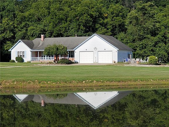 Country living at it's best! This 14.61 acre property is nestled 100+ yards off of St Rd 42 and backs up to Army Corp property. A 40X72 pole barn sits next to a stocked pond. It has a nice 20X30 concrete patio with a firepit and wiring for a hot tub. Also a cozy covered front porch. A jetted tub. Now hooked up to Cataract Lake Water Corp. Brand new septic system. A 30X30 attached garage that has a chute for firewood to the basement for the wood burning stove. And high speed internet for those work from home days. The kitchen was upgraded in 2018 which included granite countertops, under cabinet dimmable lighting, and overhead track lighting. Nice laminate flooring throughout most of the house.