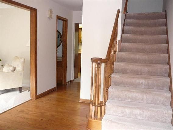 Wonderful opportunity to own a spacious 4 bedroom, 2 and a half bath Colonial on beautiful wooded lot. Open main floor features living room, family room with fireplace, eat in kitchen has peninsula, formal dining room and tremendous views of patio and pool. Spacious Master has walk in closet, whirlpool, shower stall, ceramic vanity on the upper level with 3 other generously sized bedrooms, another full bath with ceramic tile vanity and shower over tub. Lower finished rec room