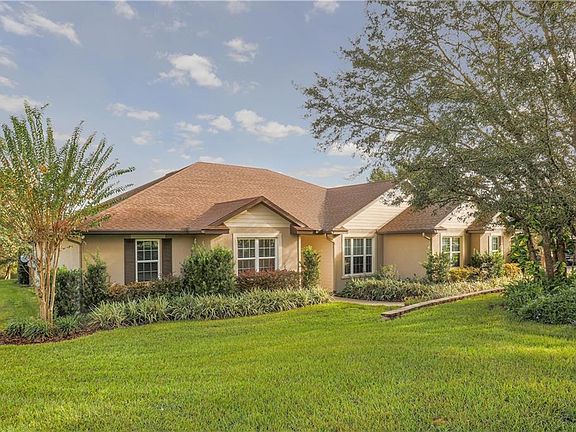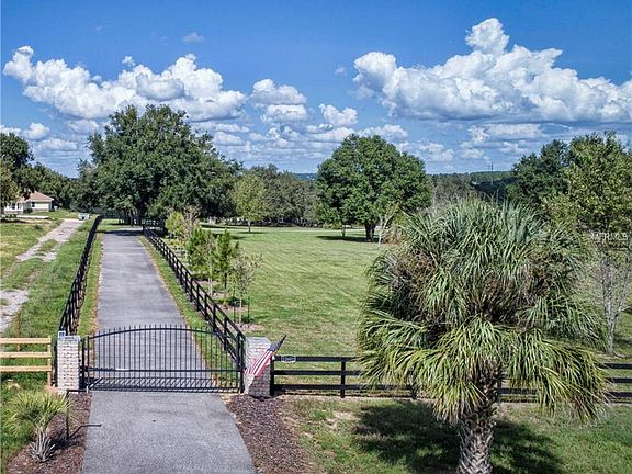 WILDFIRE FARM. LUXURIOUS 4 BR, 3 BA HOME ON GATED/FENCED 10 ACRES, 3-CAR GARAGE + WORKSHOPS. Located a stone's throw from every amenity imaginable, a beautiful spot offering a tranquil setting situated on acres of rolling pastureland graced with mature trees and breathtaking hilltop views. This custom 4,256 SF home was lovingly designed with attention to detail and you must experience the many upgrades including outstanding craftsmanship, crown molding, trey ceilings, designer finishes, and the stunning back porch and pool lanai. Open concept living room and kitchen perfect for entertaining. Gorgeous kitchen which features fine wood cabinetry, granite counters, stacked stone wall, high profile appliances, wine refrigerator, gas-fired stove top, walk-in pantry, breakfast bar, and dining alcove, provides a warm inviting area as it opens to the family room. Master suite, with exquisite spa-like bath, custom walk-in closets and private access to pool lanai. Covered, screened lanai includes a stacked stone fireplace and summer kitchen with stainless grill, beautiful views of the azure pool and incredible back yard. There is plenty of room for all your toys in the detached 3-car carport, designed with function in mind and boasts another workshop and Casita. You'll only need to step into the back yard to enjoy the privacy and beautiful view. This is the type of place you go to for a vacation, imagine coming home to it everyday! Just a short distance to the new hub of downtown Minneola and new turnpike exit.