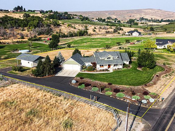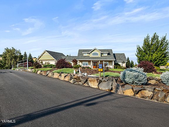 Custom built by Gust Builders and featured on the Tour of Homes in 2009. Lovingly cared for by the original owner. Classic front porch design with view of Mt. Adams. Great room concept with corner fireplace, island kitchen with breakfast nook and a large formal dining room. Hickory hardwood flooring and cabinetry, knotty alder doors, and an oak stair banister add warmth and dimension. Private den with French doors, built in shelving and a window bench. This ''zero-barrier'' home has no steps from entry or garage and a no-step shower in the primary bedroom, which is located on the main level. Two guest rooms and a full bath are located upstairs. Beautiful yard with Yakima-Tieton irrigation shares, and an east-facing patio that enjoys afternoon shade on hot summer days. The home was wired during construction for a security system, has a circulating hot water pump, and a propane stub to the patio for your bbq. The 960 sq ft shop/garage has 200 amp service, dust collection system, air filtration system, an RV carport and was built by New Creation Construction in 2022. Shown by appointment only.