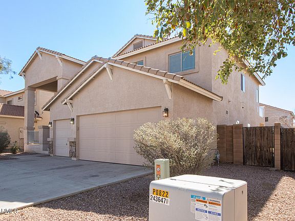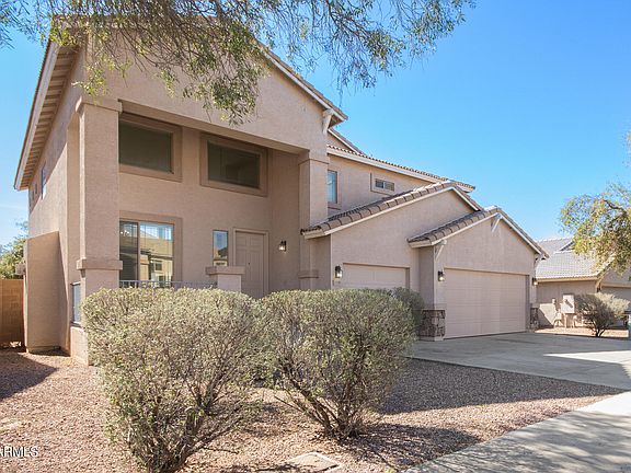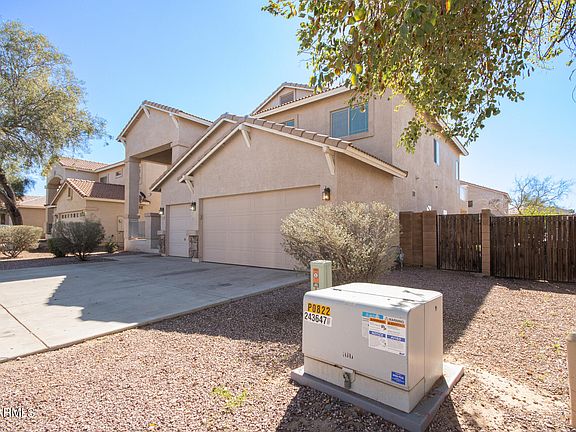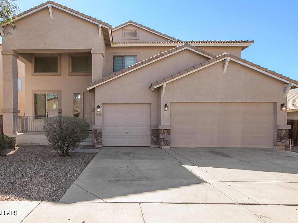The search is over! This 4-bed, 2.5-bath home is complete with a 3-car garage, RV gate, tasteful stone accents, and a welcoming front porch. Discover an inviting living room with soaring high ceilings, durable tile flooring, and a cozy fireplace. The family room has sliding doors leading to the backyard for seamless indoor-outdoor living. The kitchen features a breakfast nook, raised panel cabinets, sleek SS appliances, a pantry, and an island with wood counters and a breakfast bar for casual dining. The cozy loft is ideal for an office or media room. The main bedroom boasts balcony access for a breath of fresh air, soft carpeting, an ensuite with dual sinks, and a walk-in closet. The backyard has a covered patio for al fresco dining and is a canvas for your dream oasis. Make it yours!