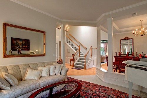 Rare opportunity to own a main floor master golf course view home.3 bedrooms, den and a spacious bonus/media room complete with a NEC 100 screen projection system.Spacious kitchen with granite tile center island and newer appliances incl 5 burner Jenn Air cooktop.Main floor master suite has beautiful views of the landscaped yard. Private, backyard features a large deck,multiple patios,custom made copper fountain. Backyard faces West for sunny afternoons & evenings. Stay cool indoors with AC