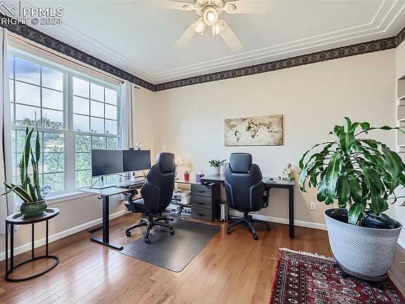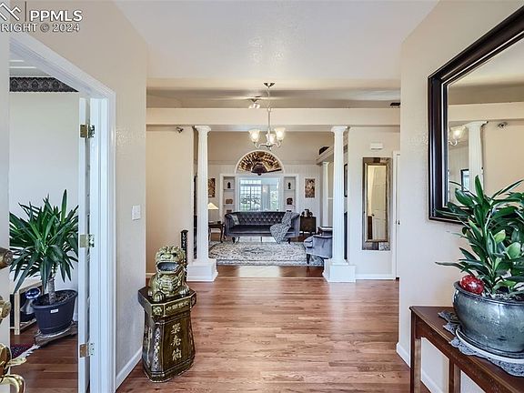 Truly a treat in the Trails, an enviable community that's a bit more private, more serene, more than you ever expected. A neighborhood of custom homes on lots of 2+ acres, this community allows for horses and has no HOA fees. Close to open space and trailheads of the Black Forest area, this beauty of a home is also near to expanding amenities from proximity to the cities of Parker, Monument and nearby Colorado Springs. Within this premiere neighborhood, this home on Lonesome Pine Trail sits atop a hill overlooking it’s 2.66 acres of landscaped property that is surrounded by a full fence running the entire perimeter of your land! At 5,339 sf, this home is large. The primary suite is a standout, the huge covered patio begs for year-round use, and the tall ceilings in the amazing light-filled and elevated great room will have you picking your jaw up from the floor as you take in the nearly 360 degree views from massive windows! With 5 large bedrooms, 4 bathrooms, a huge den/game room, four fireplaces/stoves, separate theater room that seats everyone, multiple welcoming living spaces, an oversized three-car garage with workshop space, and a gorgeous kitchen with island, pantry, eat-in area, and new appliances, the space afforded to you or your family by this home is unmatched. Everyone will have ample space to have a retreat of their own. A few additional highlights for the savviest home buyers: new appliances, new roof, new well pump and expansion tank, new windows, and two 220V in kitchen. Additionally, a collection of upgrades that are pure luxury will appeal to the buyer with elevated expectations, including TWO 240 volt 50 amp outlets in the garage (each on own circuit), a furnace ionizer, whole house humidifier, whole house water conditioner and water filter. WOW!! For whichever life stage you are in now, as well as for each chapter that follows, shake off the rest of the world and come home to more than you ever expected on Lonesome Pine Trail.