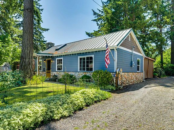 Unique opportunity to own and relax in your own ½ acre retreat. Builders - possible development opportunity!! Spacious, beautiful, and tranquil outdoors with room to play. Tree house with power, firepit and garden area. Two gated driveways, one to the garage the other to the back of the property. You will love the huge shop with power, roll up doors, storage, concrete floors. This cozy 3-bedroom home has a lifetime standing seam metal roof.