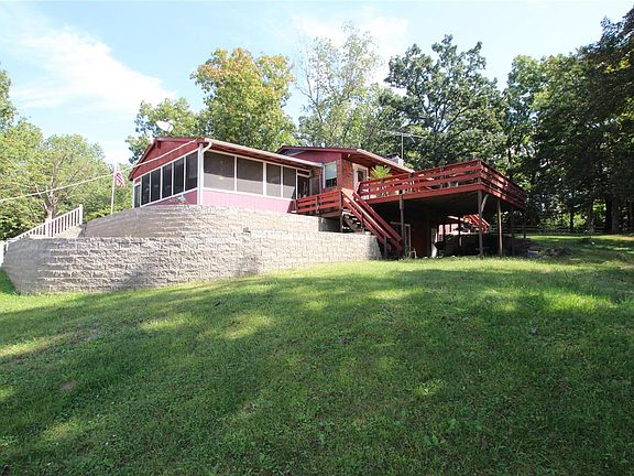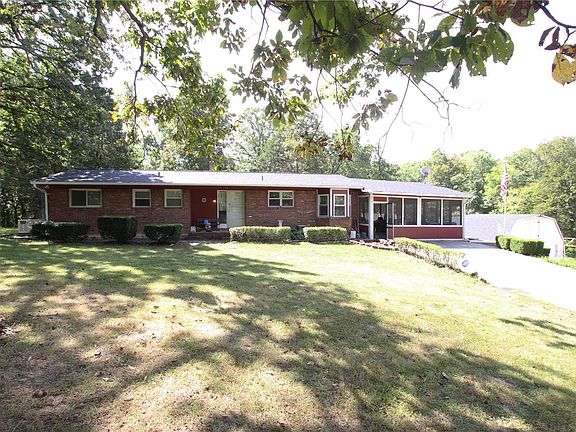 Country Life is at your fingertips! This 3 Bedroom 2.5 Bath Ranch hone on 5.5 acres can be your country oasis. This Ranch has many updates over the past few years like Roof, Windows, Septic, Bathroom & HVAC. Walk into the eat-in Kitchen with a custom bay window, down draft cooktop and breakfast room – Formal dining room that leads into the family room w/ beautiful Brick woodburning fireplace - 3 nice size bedrooms w/ lots of closet space and updated bathrooms – The double walk out lower level is finished w/ large rec room & gas fireplace, half bath, plenty of storage & laundry area. Out Back is a massive, shaded deck with custom seating and patio below – There is a detached garage with loft workshop and lean to for storage, & shed with lean to – propane Generator & Lighted Horseshoe pit – Carport was turned int Screened Porch - Property meanders along the beginning of Charette Creek - PROPERTY IS PART OF AN ESTATE AND BEING SOLD AS-IS / NO WARRANTIES OR REPRESENTATIONS