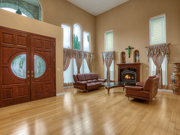 Beautifully landscaped, luxury home in Issaquah SD! Gated entrance + fountains +Den/office, spacious loft, & accommodates today's high tech lifestyle. Open floor plan w/ 17' ceilings & open rail staircase. Exquisite, detailed features throughout & deluxe kitchen! Big, beautiful wood wrapped windows, 10 skylights, & shared balcony between 2 BdRms. +Hot-tub, fire pit, AC, electronic central air cleaner, built-in speakers, intercom, security system & circular driveway! Convenient to all amenities!