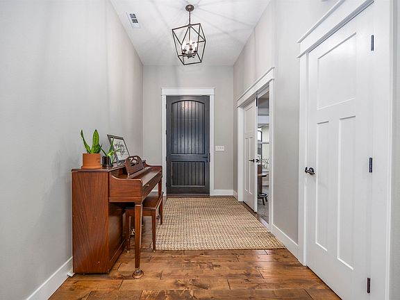MLS# 289934 Welcome to this stunning single-level home in West Pasco’s Spencer Estates, perfectly positioned on an expansive .61-acre lot. Built to rival new construction, this home offers the look, feel, and quality of a brand-new build—without the wait. Step inside to an open, light-filled floor plan featuring a spacious great room anchored by a cozy brick fireplace and abundant natural light. The beautifully designed kitchen is a true showstopper, offering quartz countertops, a tiled backsplash, a large island, modern appliances (refrigerator included), rich wood cabinetry, and a massive pantry. The adjacent dining area flows seamlessly into the great room and provides direct access to the patio—ideal for everyday living and entertaining. The spa-like primary suite is a private retreat, featuring a luxurious soaking tub, an oversized tiled shower, and an expansive custom closet with built-in storage. A split-bedroom design provides privacy for the additional bedrooms, while a large laundry room offers a utility sink and generous storage. Thoughtfully designed by the original owners with future enhancements in mind, the property allows room to add both a pool and a shop. The extra-deep garage is currently used as a home gym but could easily accommodate a boat or additional vehicles. Additional storage is abundant, with attic access via a pull-down ladder and enhanced attic storage, plus ample garage storage space. Enjoy outdoor living on the extended covered patio, complete with exterior ceiling fans to keep you cool—ideal for entertaining guests or relaxing in comfort. The fully landscaped yard features fruit trees—including two peach trees, two cherry trees, a four-variety pear tree, and two apple trees—and a double gate for RV parking. Additional highlights include professionally cleaned HVAC ductwork and carpets, a water softener system, and both refrigerators included (one located in the garage). Set in a neighborhood of beautiful homes on large lots, this property offers a fantastic location close to the river with easy access to West Pasco amenities. This exceptional home truly has it all—space, style, and a prime location.
