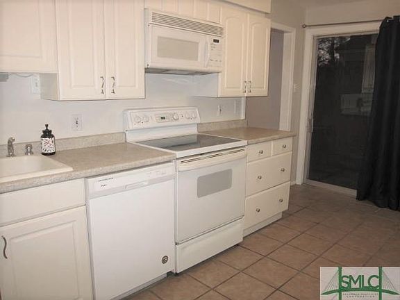This mid-century design is move in ready with a freshly painted interior and exterior. New wood laminate flooring in bdrms. Master features huge double closet and a private bath. Fully equipped kitchen w/white cabinets, pot drawers & pantry, deep sink, newer s/s fridge and recessed lighting in the breakfast nook with slider to side patio - perfect for grilling. NO CARPET! LR/DR with cathedral beamed ceiling, tile flrs and a wall of windows overlooking the backyard. Oversized den with wood lam flooring and slider to the bkyd. Laundry closet complete with washer/dryer. All measurements are approximate. Great location set between two malls, easy access to the Truman Pkwy, walking distance to the Windsor Forest Elementary & High Schools, down the road from the Coffee Bluff Marina, the LaVida Golf Course & Club, Georgia Southern University - Armstrong Campus and the community's dog park and Tribble Park with lake and playground.